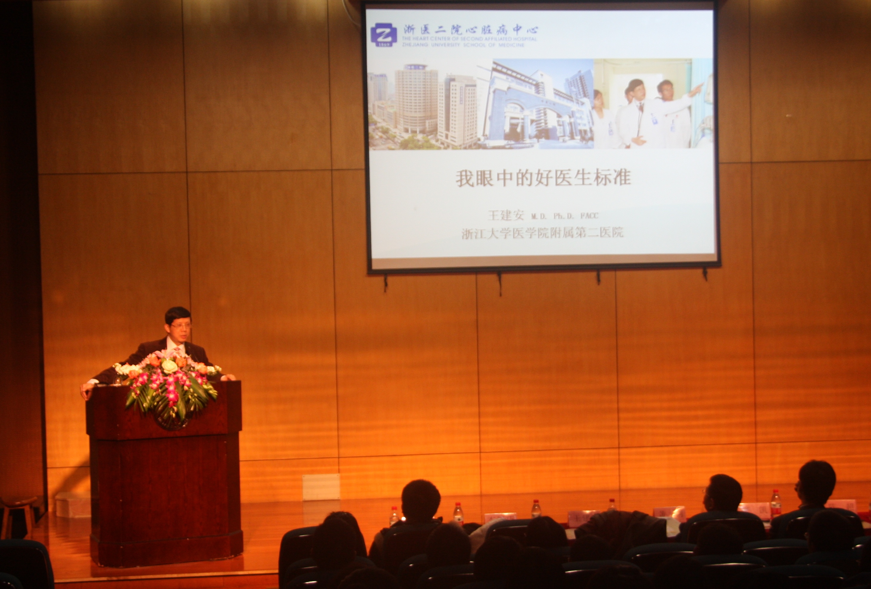 而接下来的“院长面对面”讲座,是由浙医二院院长王建安带来的题为“我眼中的好医生标准”专题报告。他卓越非凡的演讲赢得了现场观众阵阵掌声,有趣的亲身经历让我们如痴如醉。他对“爱心在行医中的重要性”的完美阐释,让我们深刻了解人文修养对于医生的重要性,更是引起了现场广大医学生的共鸣。观众踊跃提问,院长详尽解答,可谓高潮迭起。最后的赠书(《最棒医院的7堂课》)环节更是为本次开幕式画上了圆满的句点。相信即将呈现的更多活动一定能打造全新的“艺术医学、人文医学、品质医学”。