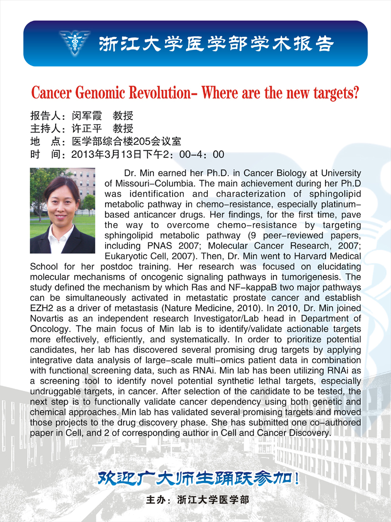 医学部学术报告第四十九场——闵军霞教授学术报告