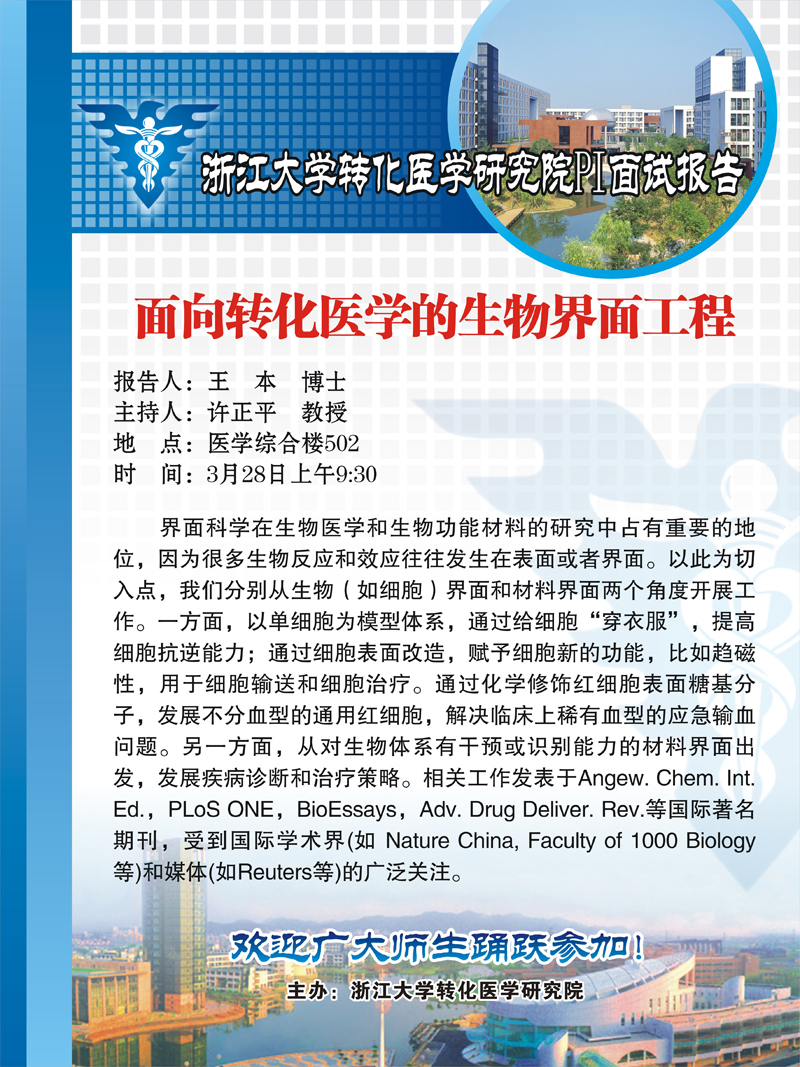 浙江大学王本博士学术报告——面向转化医学的生物界面工程