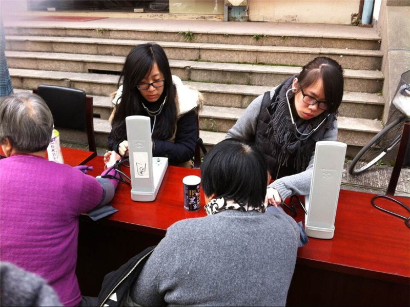 2014年12月07日上午,七年临床1003班同学在西湖区桃园春居文华社区进行了健康咨询、血压测量、按摩等活动。 活动前几天,我们制定了详细的策划方案,社区负责人联系,分组,器材准备,按摩视频学习等。今早8:30,组员们已经纷纷小区居委会门口,简单视察环境后,组员们便开始动手布置场地,搬运桌椅。人员分为三组:一组负责为居民测量血压,一组负责为居民解答健康问题,第三组负责肩颈部按摩。同学们用自己的专业知识,耐心体贴地为文华社区居民的健康奉送绵薄之力,得到了长辈们的感谢和称许,虽然天气寒冷,大家心里是温暖欣慰的。直到中午近12点,我们结束了这一次的社区服务。 入社区的活动让大家在业余时间为居民的健康做点事,为社会做点贡献,也让我们学有所用,体现我们作为医学生的价值。这次活动进行地非常顺利,也希望通过我们的努力能让更多人学习到健康知识,享受到健康服务。