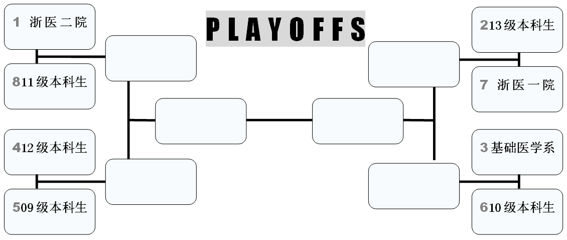 至此,2014-15赛季医学院篮球联赛常规赛收官。球队排名以及对阵形势随即出炉,如下: