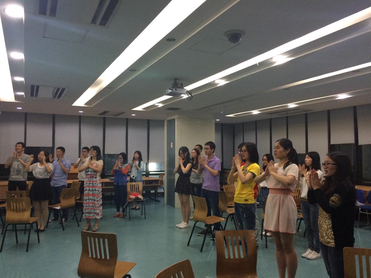 此次活动内容分为三个主要环节。第一项,所以参与者分为三个讨论组,并各自针对研究生期间的金三角进行讨论。讨论内容主要包括以下四个方面:研究生期间最开心的事;研究生期间最难过的事;研究生期间最遗憾的事;研究生期间最想感谢的人。活动第二项,共同探讨大家理想的生活方式,并且谈谈各自对五年后理想生活的畅想,以及想要达到理想目标所需要具备的条件。活动第三项,学会感恩。杨芊老师通过讲座的方式对大家进行了团体心理辅导,令同学们受益匪浅。讲座结束后,同学们又在杨芊老师的带领下一起合唱歌曲《感恩的心》,并学习了歌曲中歌词的手语表达,在悠扬的歌声中,此次活动达到了最高潮。