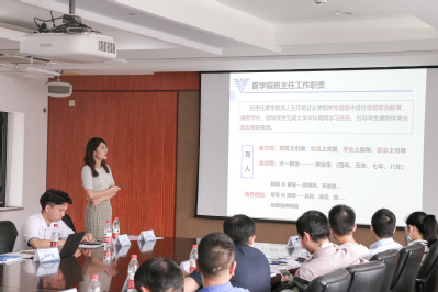 2020年9月11日,医学院2020级新生班主任培训会在医学院综合楼701会议室召开,学院党委副书记陈周闻、学工办主任陈超、本科生办赵丽娜、2020级新生班主任和医学院各级辅导员参加本次会议。会议由学工办田宇倩主持。