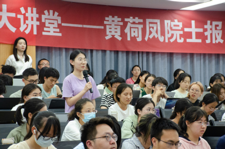 听着黄院士的讲座,在场同学备受激励,与黄院士积极地进行了交流。有同学提问道,黄院士遇到过最难的问题是什么。黄院士幽默表示,自己一时没有想出什么特别困难的事情。张丹老师是黄院士的学生,她补充道,“事实上,黄院士应该遇到过许多在我们看来非常困难的事,但黄院士都以坚定信念和进取精神解决了科技创新攻坚中的众多难题”。其他同学提出有关医疗技术进步、科研临床实践的问题,黄院士都结合自身经历,一一解答。